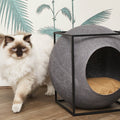Meyou products with their pure design are made from natural materials. They have been designed to offer maximum comfort to cats while beautifully dressing our homes in timeless colours. Their subtle design combines curved and straight lines that create a refined cocoon for our cats. Curious and playful by nature, they can take shelter there to observe the world, rest away from prying eyes or even make their claws.