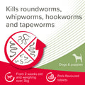 - TASTY PORK-FLAVOURED TABLETS: ensures the worming tablets easy to give, with or without food.